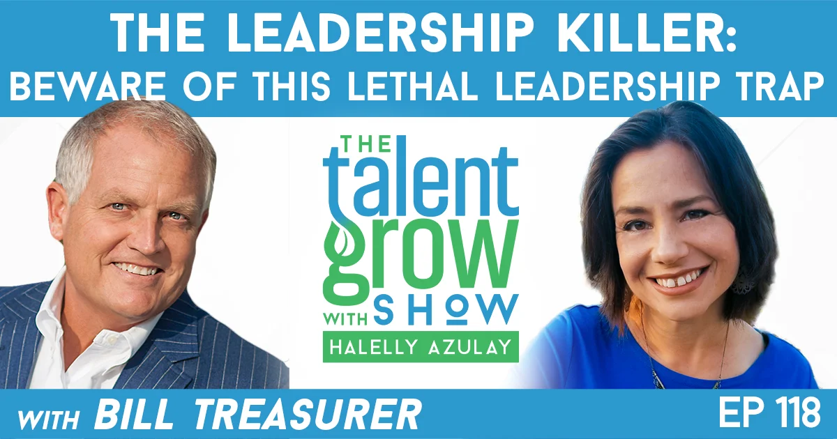 Halelly: Welcome back TalentGrowers. I’m Halelly Azulay, your leadership development strategist here at TalentGrow and this is another episode of the TalentGrow Show where I develop leaders that people actually want to follow and help you grow your own leadership skills. This episode lets me bring you back a guest from the past, Bill Treasurer, with whom I speak about how to have the kind of leadership that people want to follow by not being a hubris-driven leader but also a humble leader. We talk about his latest book, The Leadership Killer, and he shares some great insights about how to reclaim humility in the age of arrogance. We talk about what hubris is, why he says this is the most lethal leadership killer and all kinds of hubristic behaviors that you might be doing and probably unintentionally so that you can be more aware of them and stop them. He shares a couple of examples, and we talk about how to be the kind of leader that doesn’t fall into some of those traps where you’re focused a lot on being right and looking right and looking good, and not so focused on doing the right thing. I don’t think this is you, but every single leader has the potential to fall into this trap. We talk about the difference between emerging leaders, very young leaders, and also very seasoned leaders. Each of us has possible traps to fall into and so we have to develop our awareness and be proactive. I hope you enjoy this episode. Let me know what you thought afterwards. Here we go.