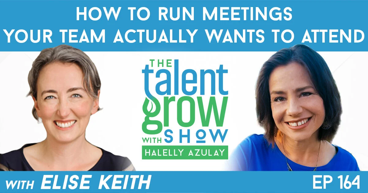 TalentGrowers, are meetings the bane of your existence? A lot of the people that I meet say yes. But it doesn’t have to be that way. I’m Halelly Azulay, your leadership development strategist here at TalentGrow and this is the TalentGrow Show and this week I have a guest who is going to help you make your meetings meaningful. Her name is Elise Keith, and she is a meetings maven. So, we talk about ways in which you can make meetings successful by being more specific, mistakes that people are making in how they run meetings, especially as leaders, different meeting types and why you should be mindful of the purpose of the meeting and how you design it, and how to get more people on your team involved and engaged in making your meetings more meaningful. I look forward to sharing this with you and to hearing what you thought about it afterward. Without further ado, let’s take a listen to my conversation with Elise. ...