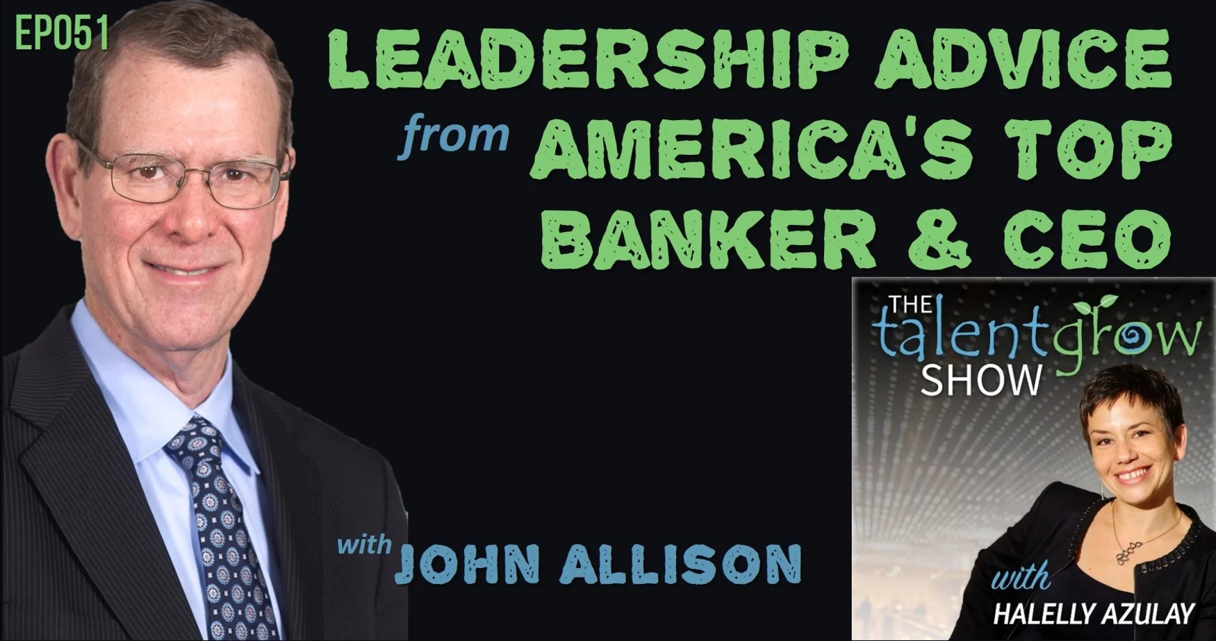 Halelly: Hey there, Talent Growers. This is Halelly Azulay, your leadership development strategist. I’m really excited this week and I think I probably always say that because I am always very excited about my show. I love doing this podcast and sharing information with you that I think will be very useful to you, and sharing some great thought leaders with you. This week there’s someone who is special, I think in a class by himself. My guest is John Allison and it’s not every day you get to interview someone that was considered to be Treasury of Secretary for the United States of America. Someone who was recognized by the Harvard Business Review as one of the top 100 most successful CEOs of the last 10 years. I mean, this guy is just a legend, and someone that I’ve really admired and looked up to and so to have him share his wisdom on this show is something that is really special. And I think that you’ll enjoy it. We talk about a wide ranging list of topics that are all related to leadership, but we go to philosophy to psychology to how to triple your employee’s productivity, how to hire, when to fire and what’s most important is how John integrates values and clarity around values with how he leads. And he teaches that, I think, really succinctly in this short podcast. I hope that you’ll enjoy it.